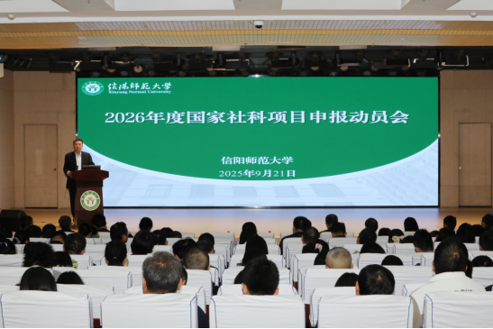 09月21日下午,学校在理科楼报告厅召开2026年度国家社科基金项目申报动员大会。校长余本海出席会议并讲话。各文科院系、科研机构、科研团队负责人,以及具有高级职称、博士学位或计划申报2026年度国家社科基金项目的教师等300余人参加会议。会议由副校长涂友超主持。