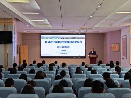 4月20日,国家级高层次人才、福州大学王应明教授应邀在贤林讲坛作了题为《如何进行科学研究和学术论文写作》的学术讲座。讲座由旅游学院院长高军波教授主持,八十余名师生参加。